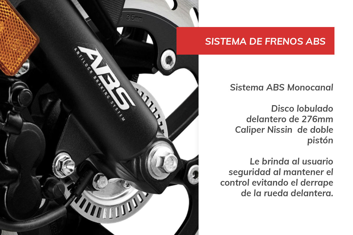 | Freno delantero | Hidráulico de disco de 276mm / ABS monocanal |