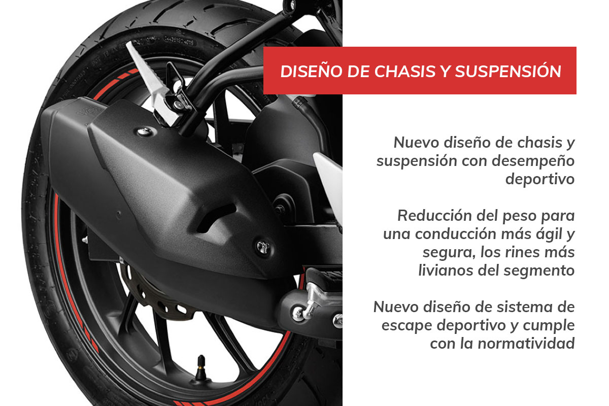 Naked Urbana, con un diseño de vanguardia, la motocicleta parte de una posición de manejo deportiva que se refleja en el diseño del tanque, la posición del manillar y los colapiés